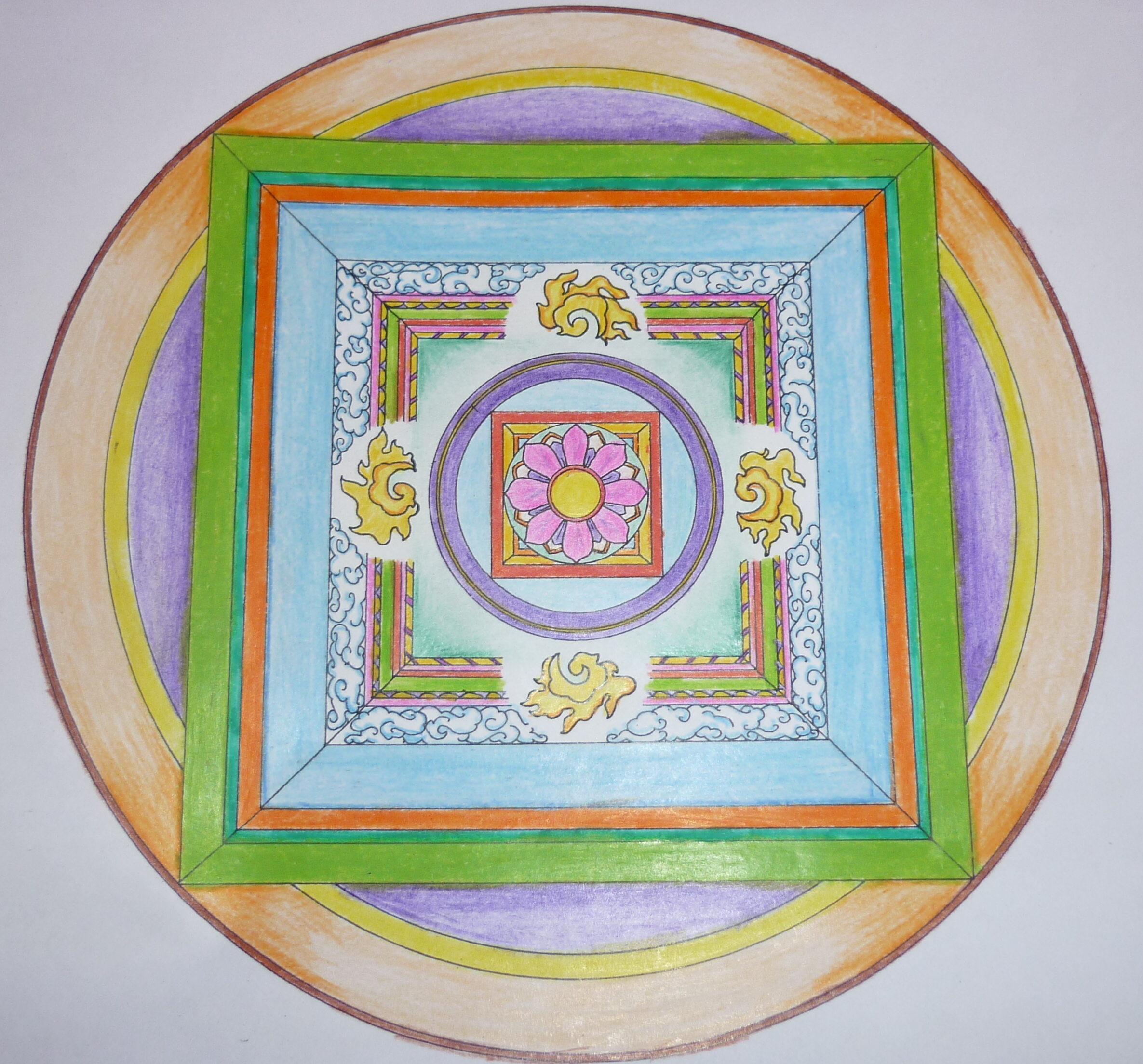 Mandala (sanskrt: मण्डल kolo, oblouk) je harmonické spojení kruhu a čtverce, kde kolo je symbolem nebe, transcedence, vnějších sil a nekonečna, kdežto čtverec představuje vnitřní síly, to, co je spojené s člověkem a zemí. Oba obrazce spojuje centrální bod, který je zároveň počátkem i koncem celého systému.